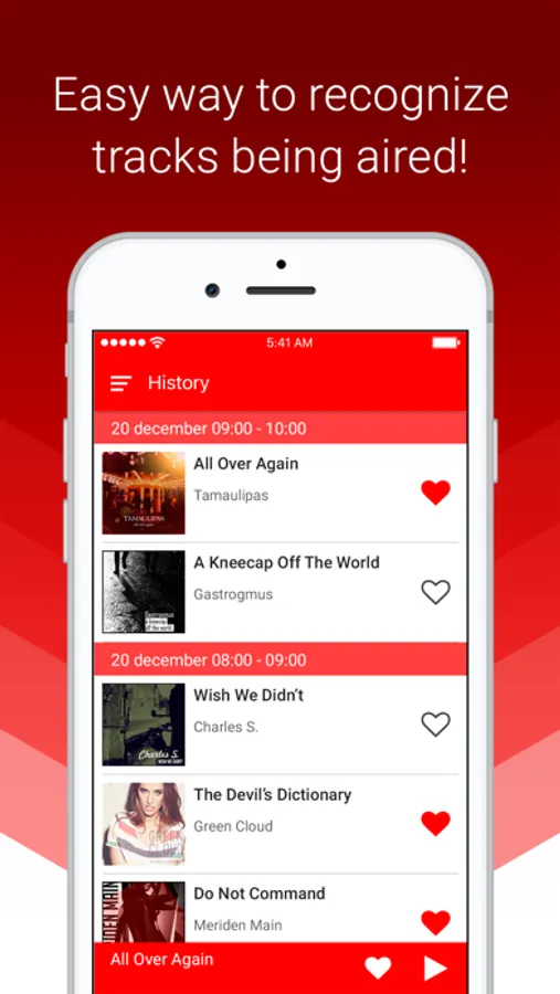 • Easily add tracks to your favourite by simply clicking the «heart» icon.