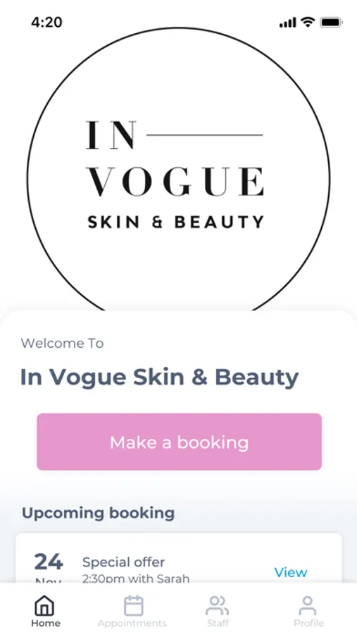 The In Vogue Skin & Beauty app makes booking your appointments and managing your loyalty points even easier. You're just a few taps away from feeling good and looking great!