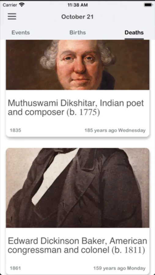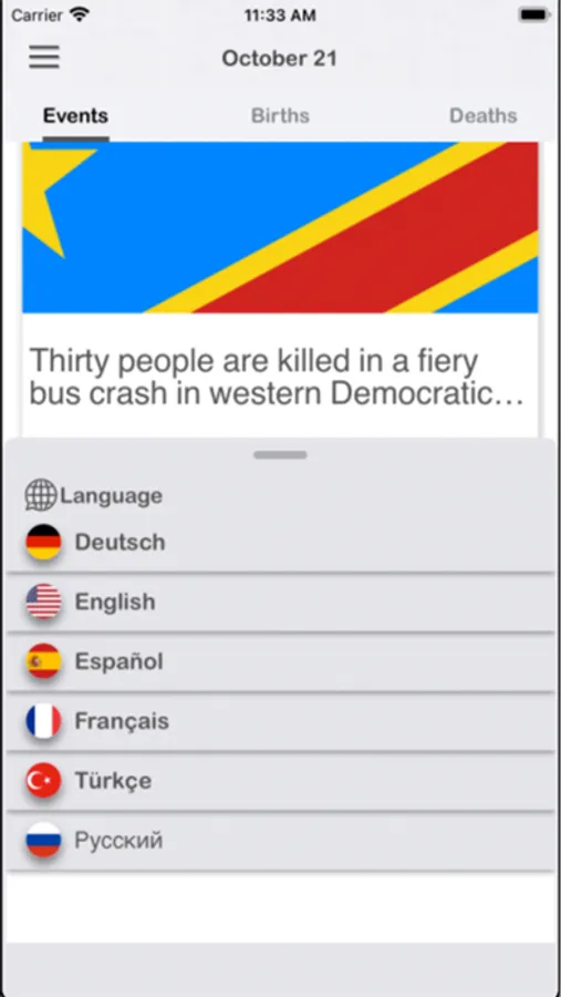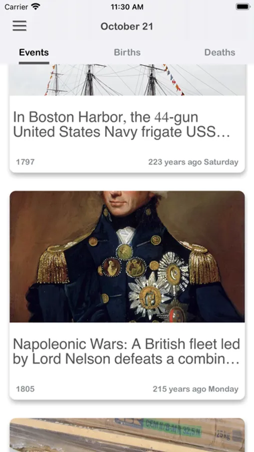 Chronological events which happened on this day in history. These events come from various sources in various languages which you can select.