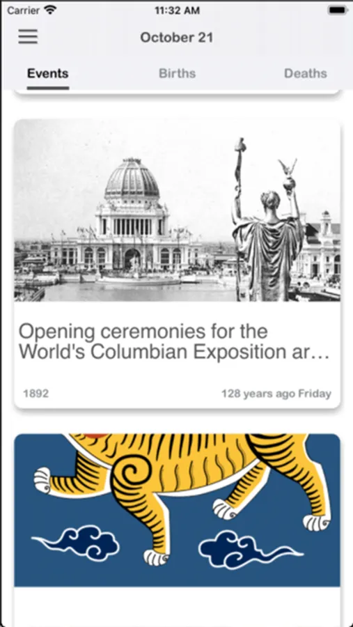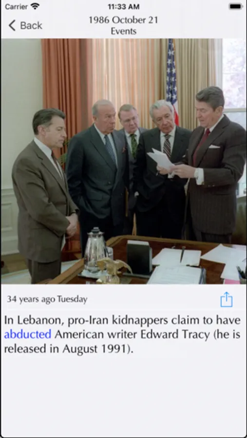 If you are interested in further information regarding a particular event, simply tap on the text and you get related links for that event.