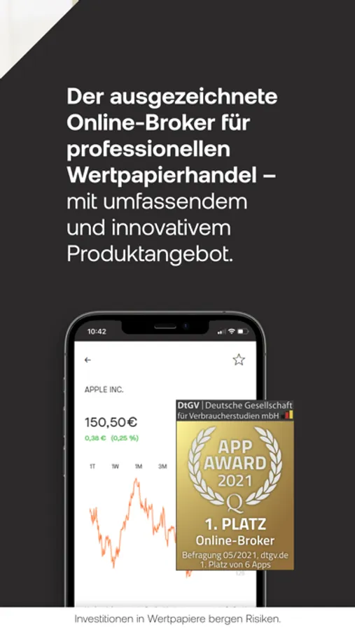 • Handeln Sie zu günstigen Konditionen und mit höchster Sicherheit beim mehrfach ausgezeichneten Broker. So traden Sie besonders einfach und geschützt.