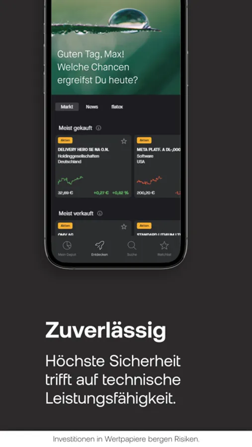 • Im Bereich “Entdecken“ stellen wir Ihnen verschiedene Wertpapiere vor, wie die am meisten gekauften und verkauften.