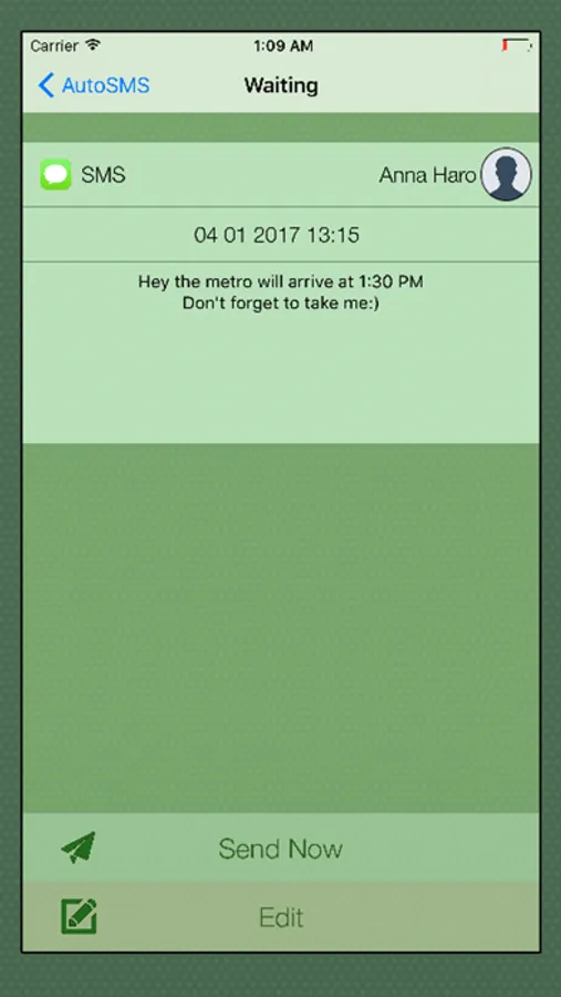 when it's time to send the message, AutoSMS will automatically copy your message and open for you messenger → all you have to do is just Paste the message and click send!