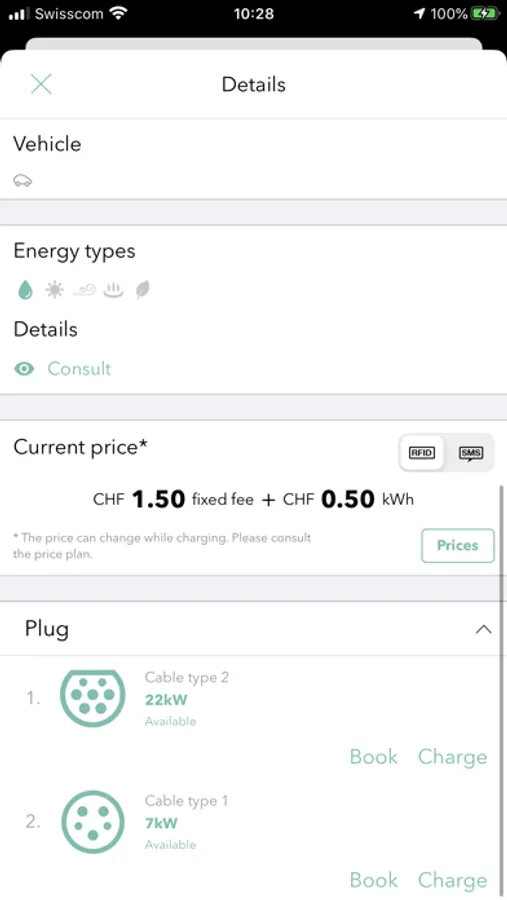 You can instantly view the proposed plug types, the real-time availability and the possible payment systems.