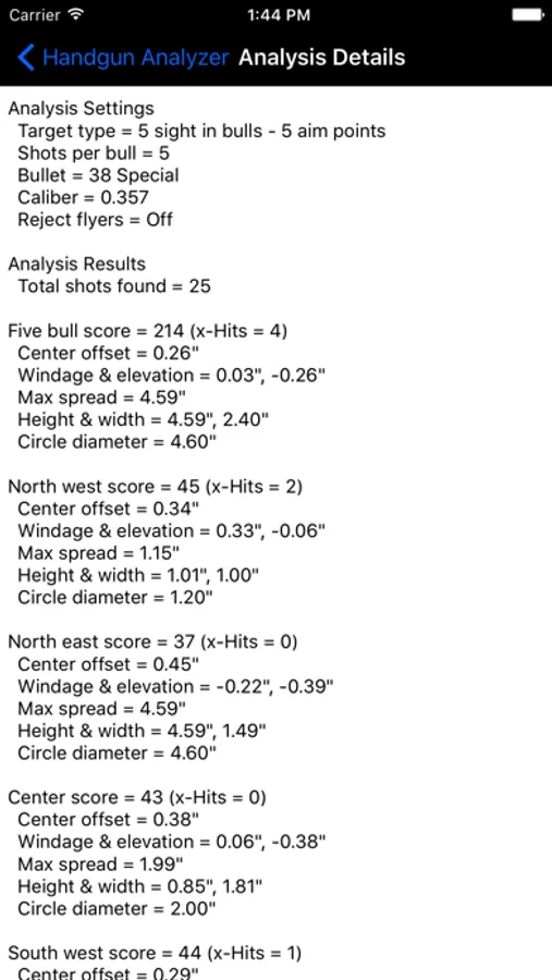 * Provides on/off switch to automatically exclude worst outlier from the analysis results (ex: best 4 of 5 shots).