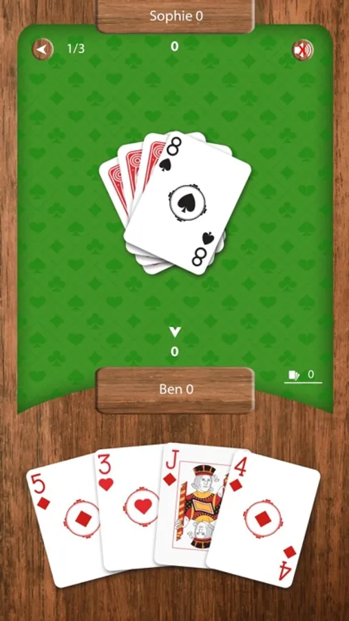 The player to dealer's right begins, and the turn to play passes anticlockwise. A turn consists of playing one card from your hand face up on top of the discard pile.