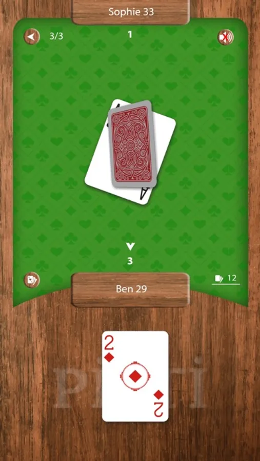 If rank of the played card matches the rank of the previous card on the pile, the playing team captures the whole pile. The captured cards are stored face down in front of one member of the team. The next player will then start a new discard pile by playing a card face up to the empty table.