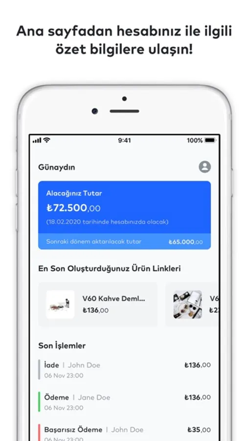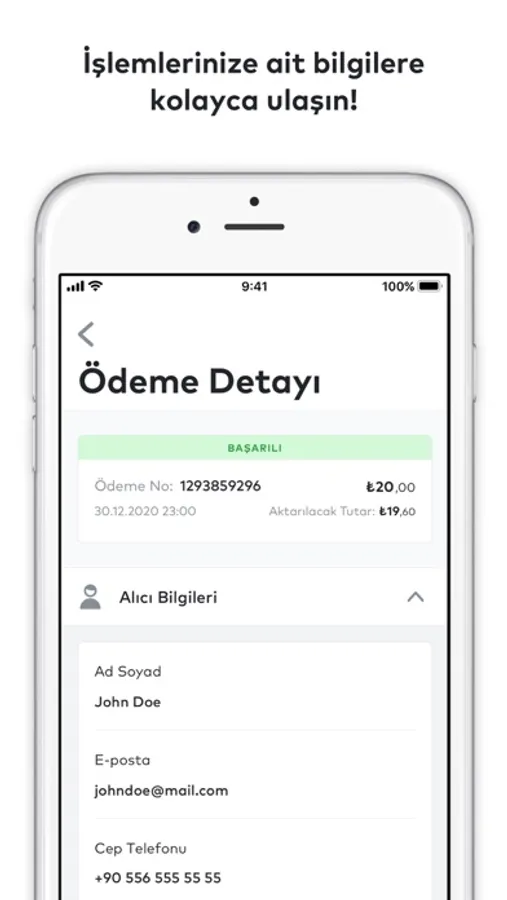 * With iyzico control panel, you can track the payments you receive in real-time on the mobile app or your PC.