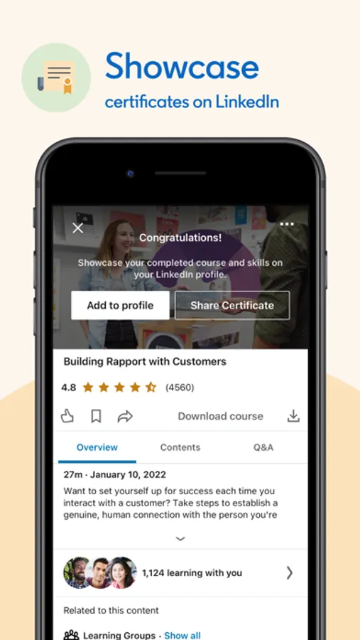 LinkedIn Learning app is free to download. With a subscription plan, you can watch the full courses across technology, creative and business topics.