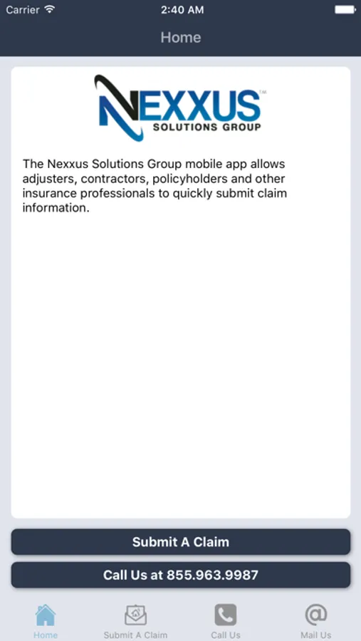 The Nexxus Solutions Group mobile allows you to request emergency services for quick response or repairs needed from a loss. It enables adjusters, contractors, policyholders and other claim professionals to quickly submit claim information to us.