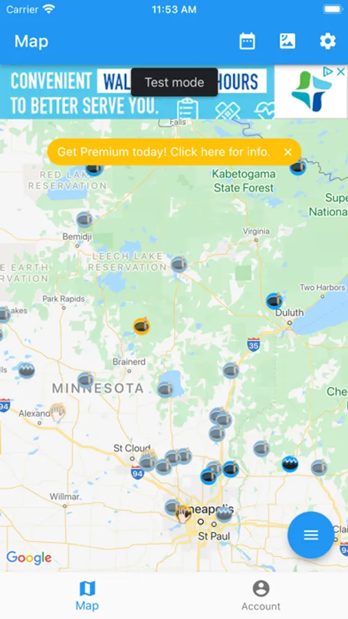 The app uses your current GPS location, so please only submit reports while you are fishing. Premium users can place icons without GPS.