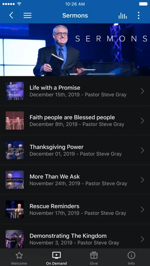 The Steve Gray Ministries App was created with the Subsplash App Platform.