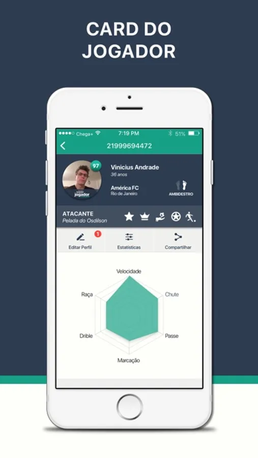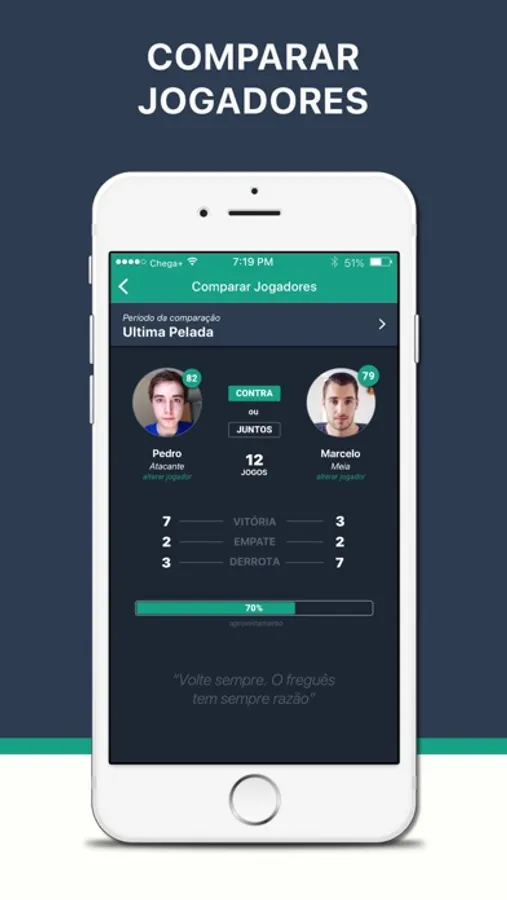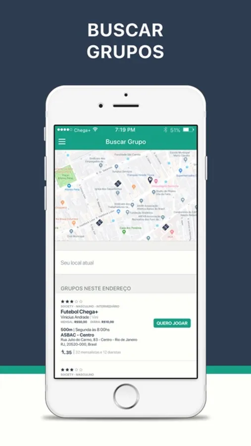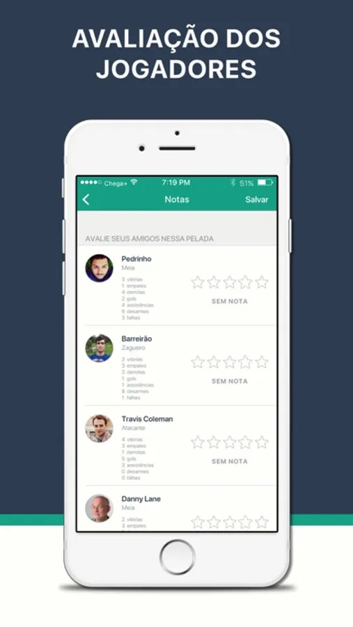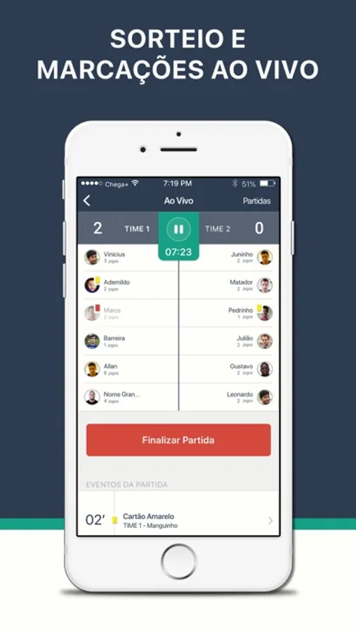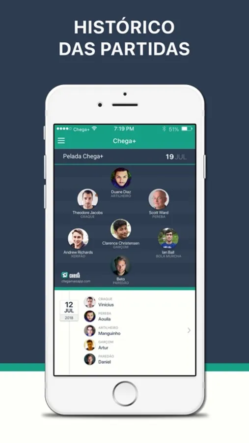 O Chega+ permite que todos os jogadores do grupo participem da administração, desde a confirmação de presença até aquela resenha que todo peladeiro curte no final.