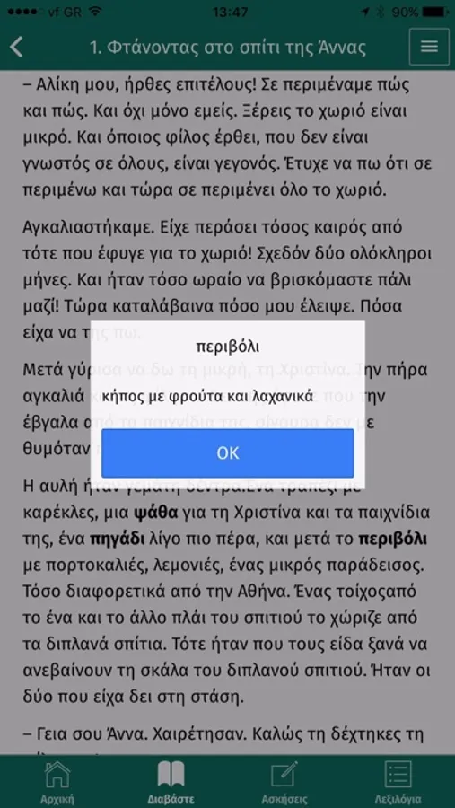 You will see the titles of the chapters so that you can get an idea of the story. As you read through, you will find words or phrases in bold letters. By clicking on each word or phrase its meaning in simple Greek or a sketch will pop up (open) in a new window. The translation of the same items can also be found in the Λεξιλόγια (Vocabularies) section.