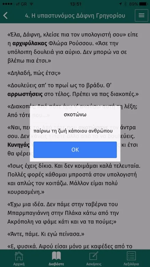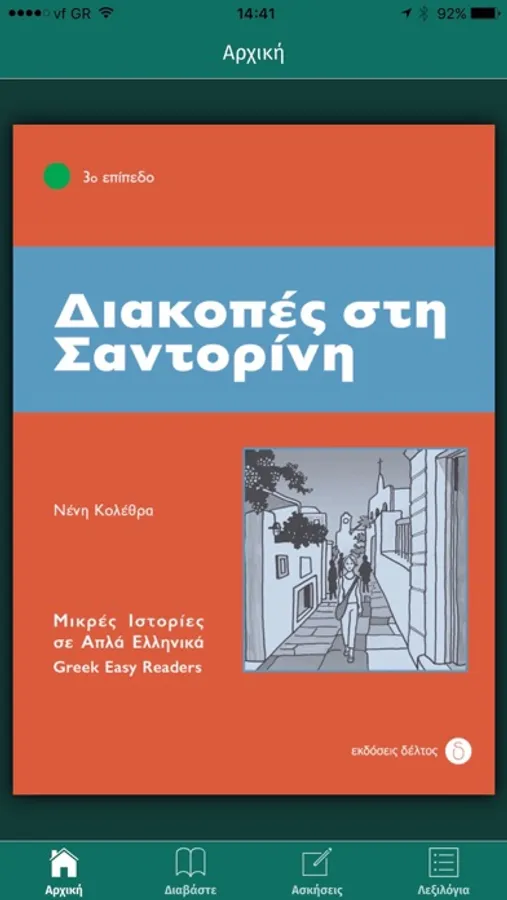 Τhe Greek Easy Reader Apps are language learning apps based on short stories accompanied by related exercises, which aim at improving the learner’s reading comprehension skills and building up their vocabulary. All stories are authored by experienced Greek language teachers. The narratives are original detective stories or adventure tales, which may be read and further exploited by the learner with or without the help of a teacher or dictionary. The series consists of 10 titles in 5 learning stages.
