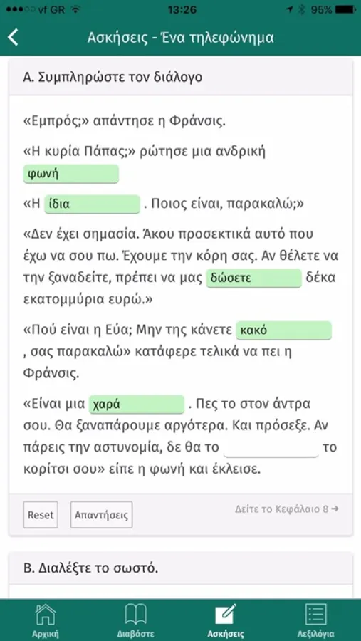 The Greek Easy Reader Apps present the above in a digital environment, such as your phone or tablet and contain: