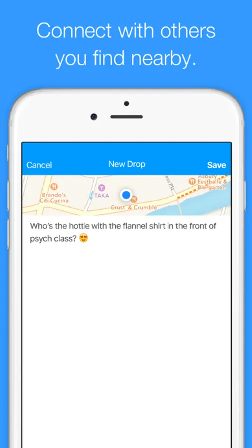 Want to plan a pickup game with your friends? Have something to sell that you need picked up? New to the area, and need some local tips? Everything on dropdrop is centered around location, so drops are relevant and timely. Discover and share drops with those around you.