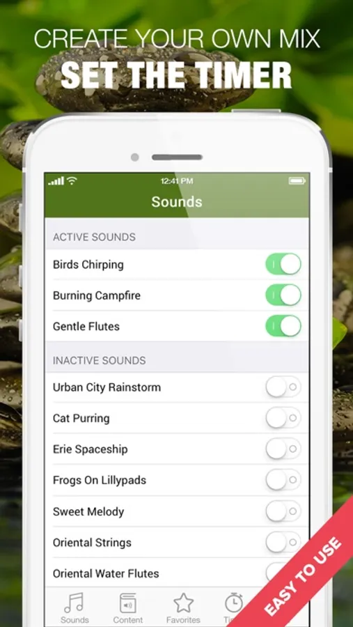 Listen to over 10 hours of nature soundscapes including wind, ocean, water, rain, thunderstorms and more. Plus mix and layer over 150 looping meditation sound effects and relaxing melodies. Built in timer makes it easy to build a daily practice -- 100% Satisfaction Guarantee - contact us with any issues and we'll resolve them or refund your money.