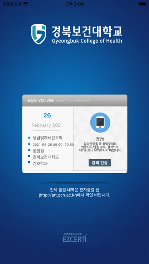 경북보건대학교의 WEB/APP 기반의 스마트출결관리 시스템은 학사관리의 편리성과 엄정한 수업관리를 위한 시스템으로 NATIVE APP을 바탕으로 출결인증 고유번호를 교수와 학생간 커뮤니케이션 하도록 구현하고 있으며, 넓은 확장성과 높은 호환성을 제공 하는 솔루션 입니다.