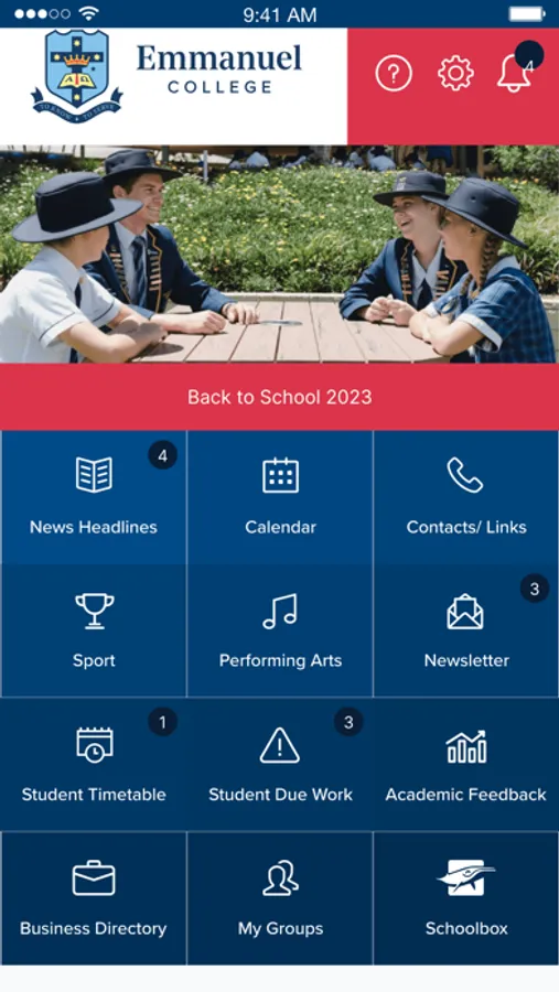 The Emmanuel College app is updated daily to ensure that the school community is able to keep their finger on the pulse of the school. The app includes the following information: