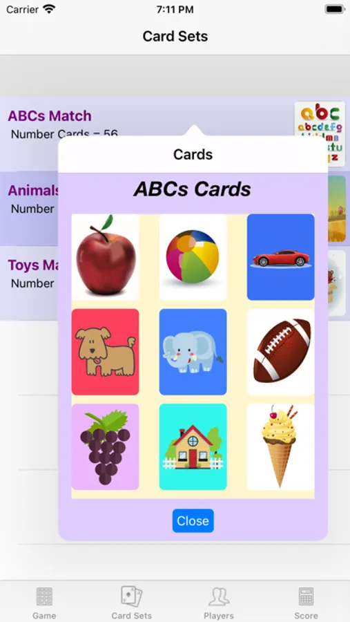 * Kids learn ABCs, spelling, letters, and improve memory skills while having fun matching images of animals, toys, and ABCs.