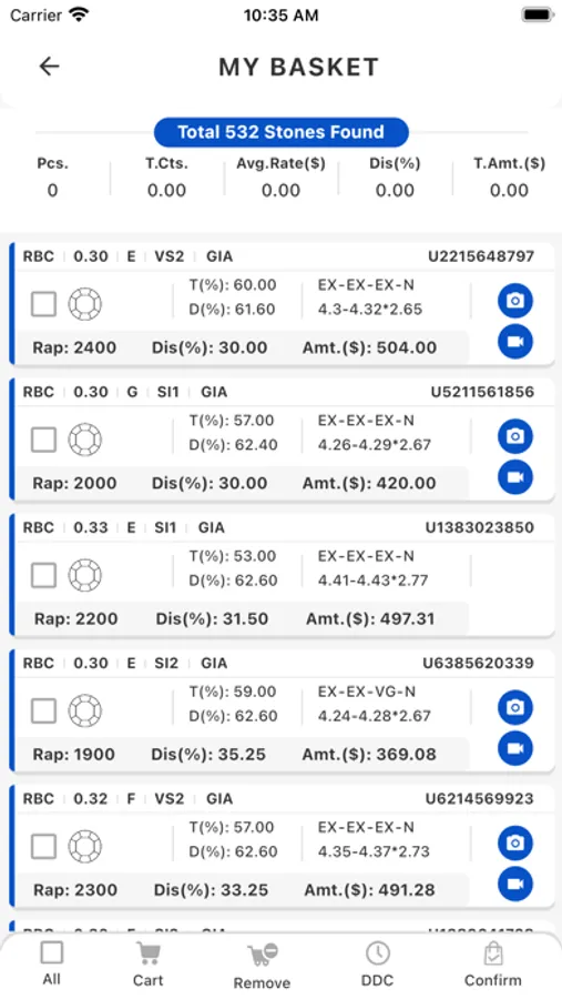 4. Now send this selected list of stones to your Basket by clicking ‘Add to Basket’ or directly confirm your stones by clicking ‘Confirm Order’.