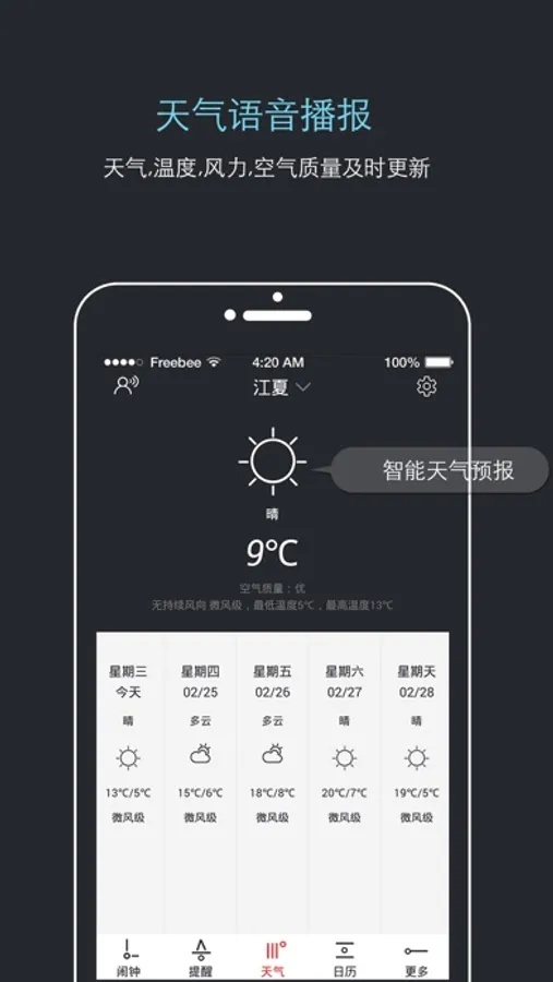 操作方便,准时提醒。个性的懒人模式,智能节假日过滤,起床困难户的福音