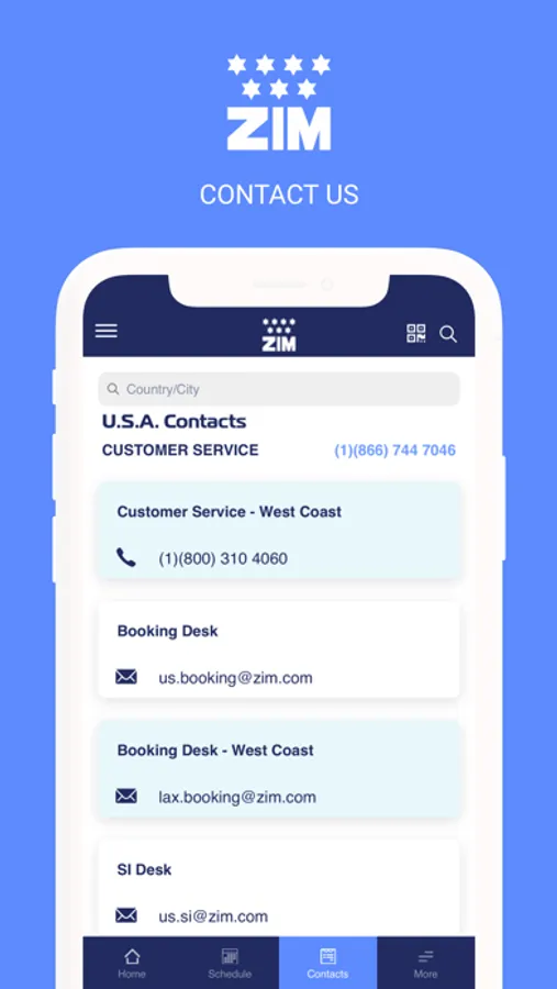 This version offers easy access to manage your shipments online, real time container tracking, vessel schedules and local contacts. ZIM’s mobile application enables easy and intuitive access to a large range of cargo shipping services, just for you, including myZIM Personal Area, Container Tracking, Find Your Route, Vessels Schedule, Find Local Contacts,