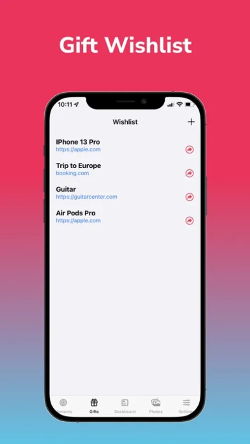 Save and share gift ideas for your partner right in the app to please your partner on their big day.