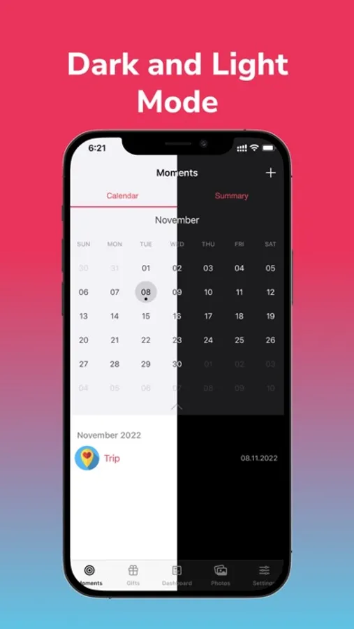 Write history by saving moments in the relationship calendar. A date, a surprise or a sudden gift - all the most pleasant days of your couple will be captured.