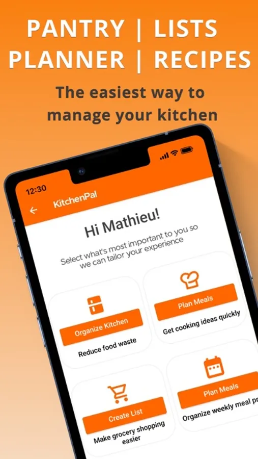 KitchenPal (iCuisto) is the only app that works as a pantry manager, grocery list, product comparison, meal planner, family organizer, and recipe ideas app - all rolled into one. The app learns and provides suggestions the more you use it, like a smart assistant.