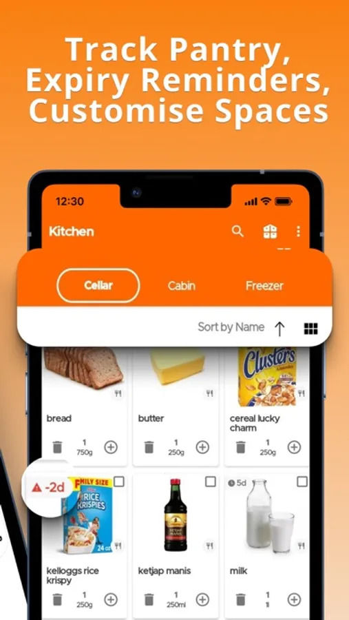 - Customise your kitchen layout (food cupboard, fridge, freezer, garage, etc)