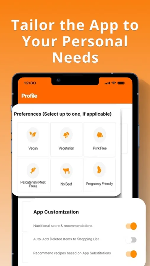 - Set your specific diet preferences & allergies (gluten free, lactose free, vegetarian, vegan, no shellfish, etc)
