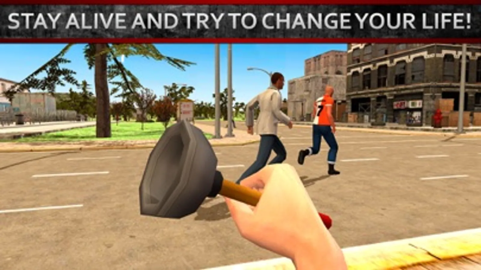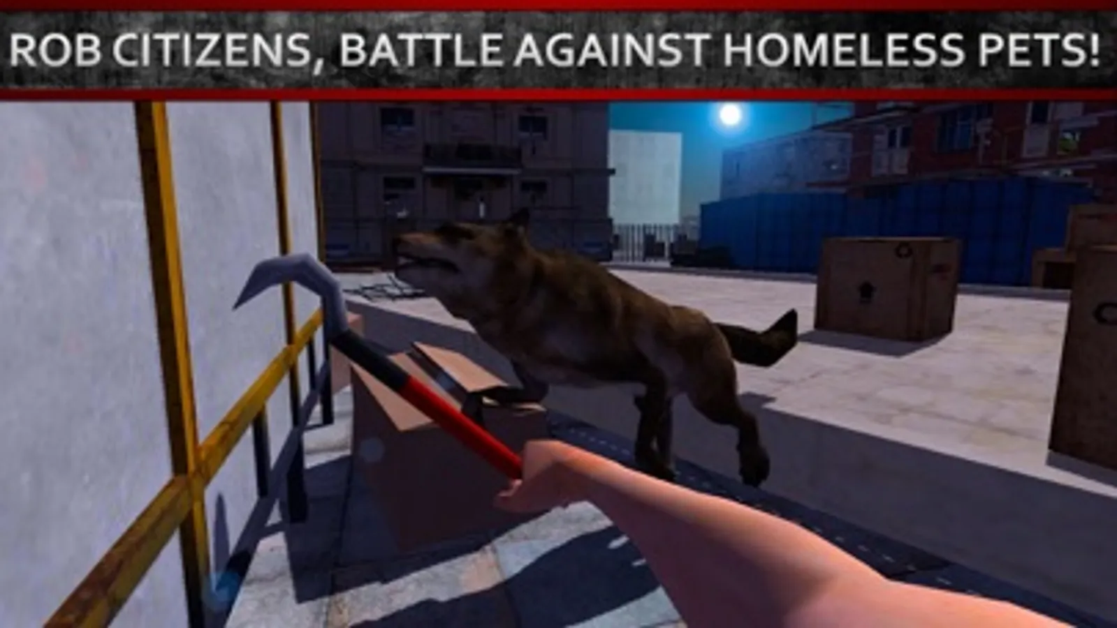- Great homeless survival simulator – explore city streets, hunt for animals, dig through garbage, craft weapons and survival tools to stay alive