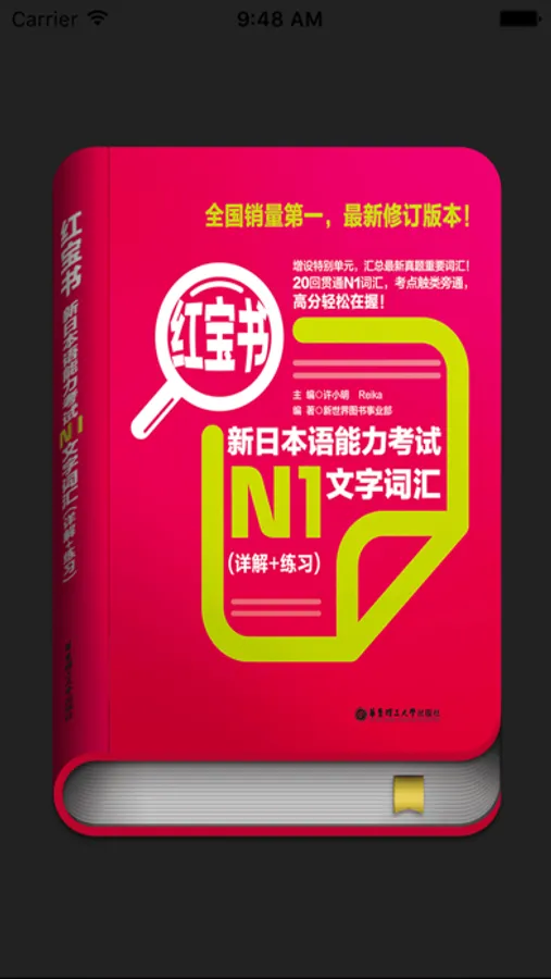 备考日语能力考试,正版应用助您轻松突破N1文字词汇关。《红宝书·新日本语能力考试N1文字词汇(详解+练习)》2011年3月第1版,手机版与2015年8月最新修订版同步。