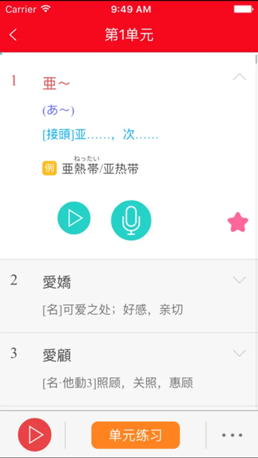 新世界图书事业部组织日语教学领域专家学者倾力编著,日语能力考试应考必备。按新日语能力考试指南和最新真题编写,根据作者多年辅导能力考试的经验,对N1文字词汇按五十音图排序,以日文汉字为基础词条编写,标注声调、常用释义、历年真题中文字词汇例句等,方便学习者对应该掌握的词汇进行整体理解和掌握。本应用按20个单元分配,设置了相应的模拟练习题。