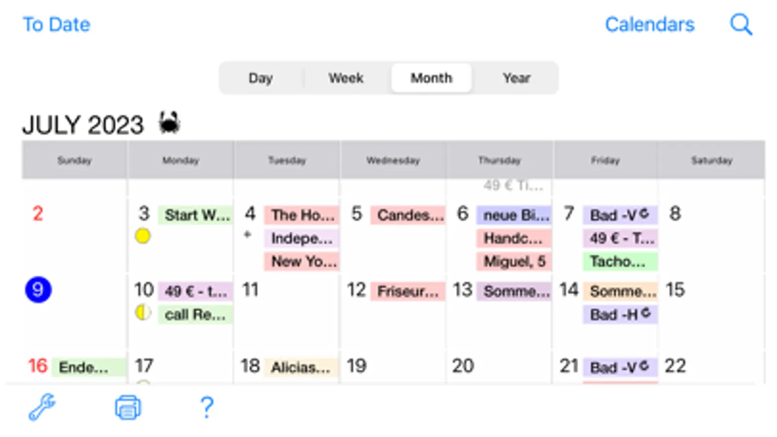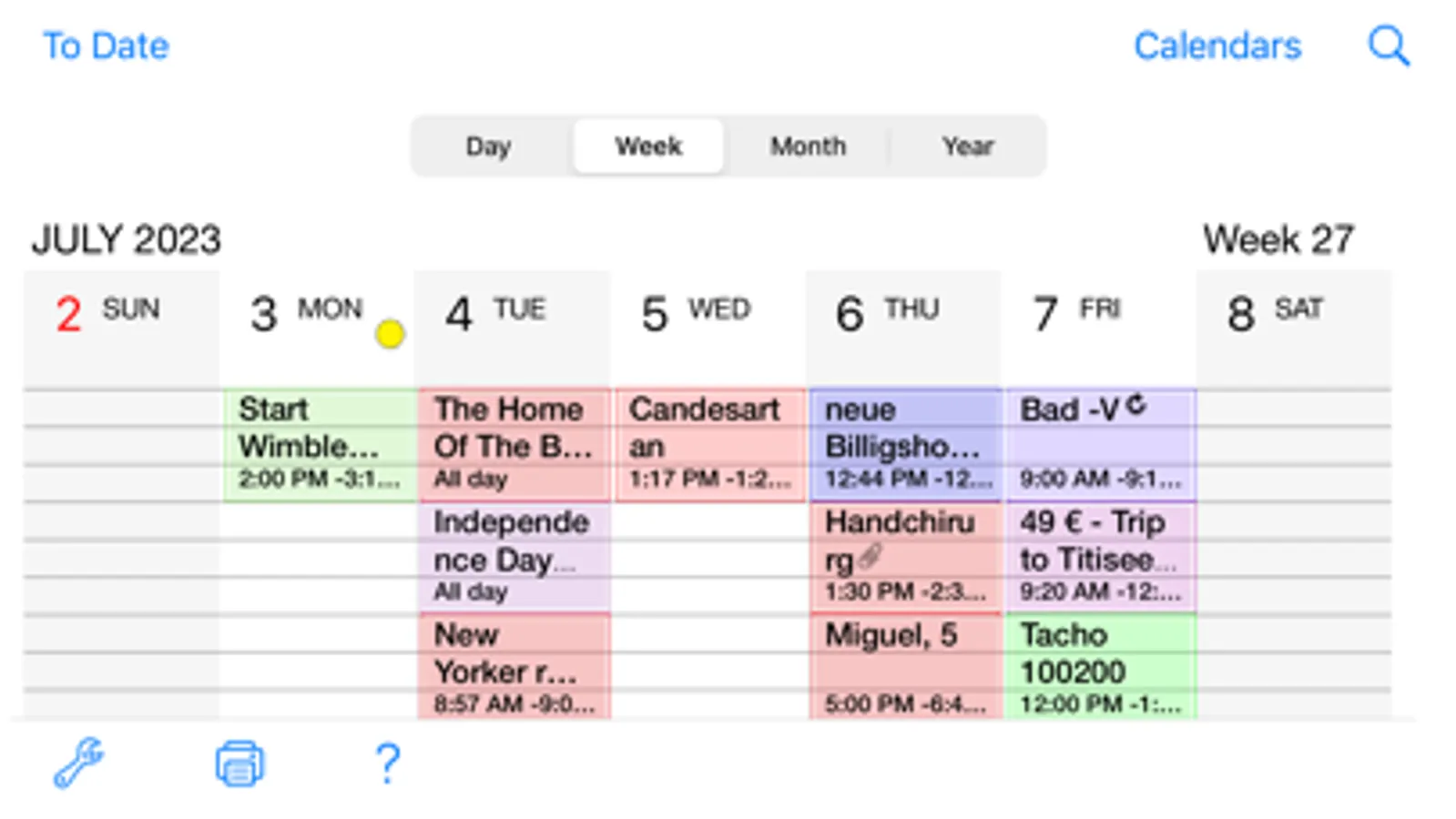 Like the analogue calendar this app shows you all your events at a glance. It is compatible with Apple's and Google's calendar.