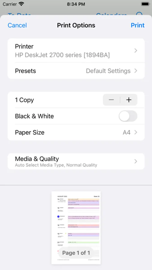 Family Calendar searches your calendars and prints everything via AirPrint.