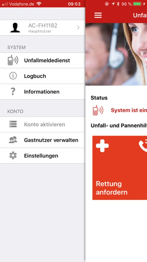 • Bei leichteren Unfällen oder Pannen auch manuelle Hilfeanforderung möglich