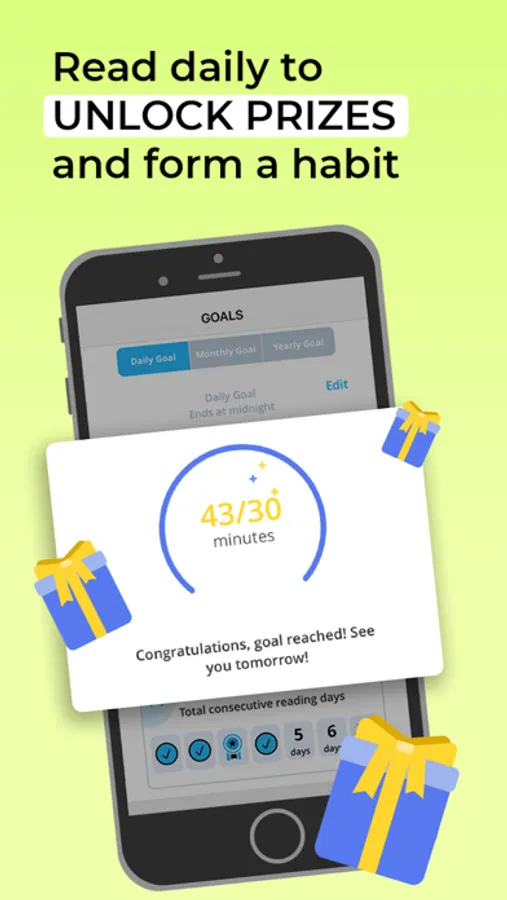 - Set daily reminders to keep you motivated to achieve your reading goals