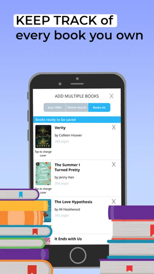 - Get book details by scanning the ISBN barcode or searching online directly in the app