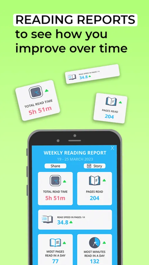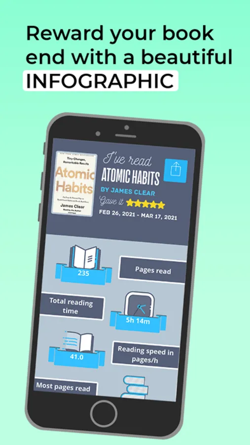 Add books, e-books or audiobooks to your collections, use the timer to track your reading and get access to awesome stats that will help you improve and read even more. Set goals and reminders to stay motivated, get weekly and monthly or yearly infographic reports on your progress.