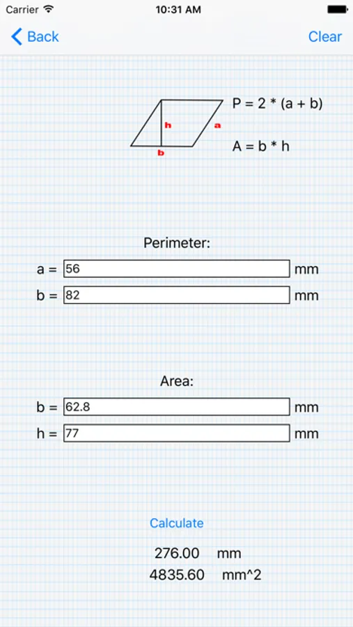 This easy to use and intuitive calculator allows you to determine the perimeter and area of multiple geometric shapes in various units of measurements. A must for mathematicians, students of any level and pretty much anyone who wants to look like a genius in front of their friends.