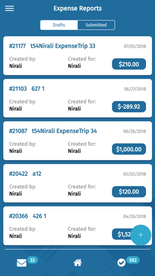 - Create, save, and submit expense reports