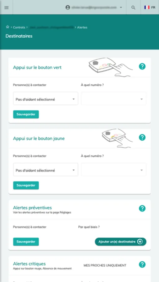 - Modifier vos informations (numéros de téléphone, ordre d’appel des aidants, comité de voisinage, médecin traitant…) ;