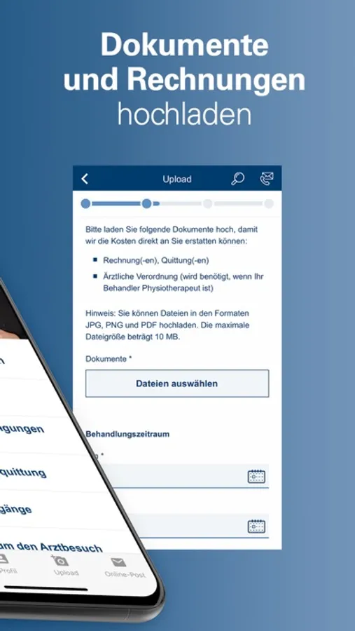 Reichen Sie zahlreiche Dokumente und Rechnungen zur Erstattung bequem online ein – einfach abfotografieren und hochladen.