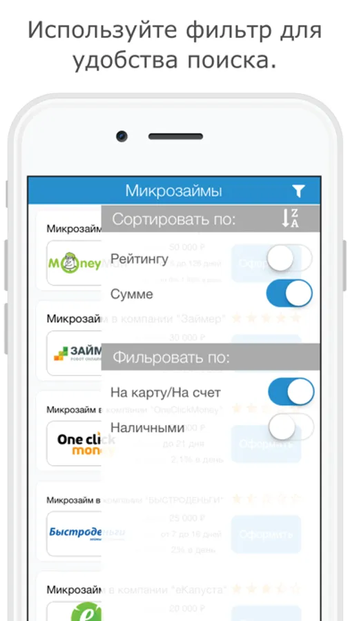 Вам понравится простота и скорость получения денег на банковскую карту, электронный кошелек или наличными, при помощи приложения "Микрозаймы".