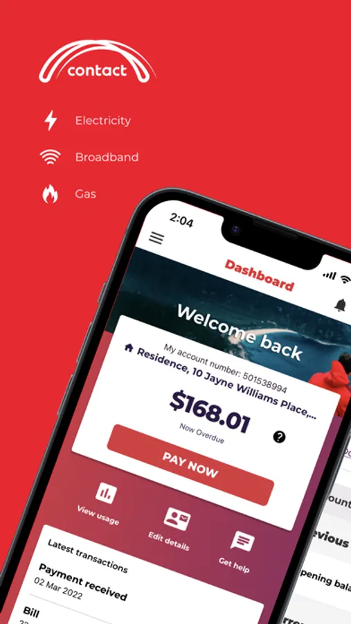 With the Contact app, keep an eye on your account wherever you might be, anytime you like. If you’re a Contact customer with an online account, use the app to: