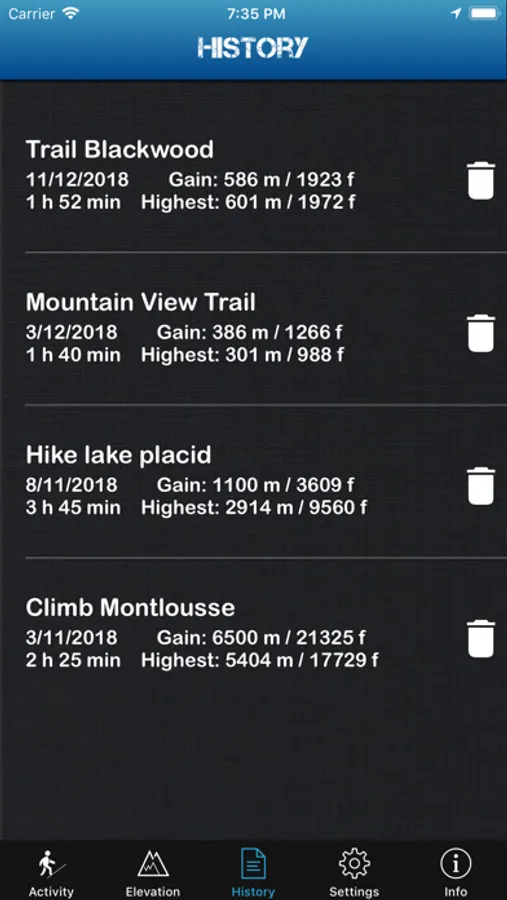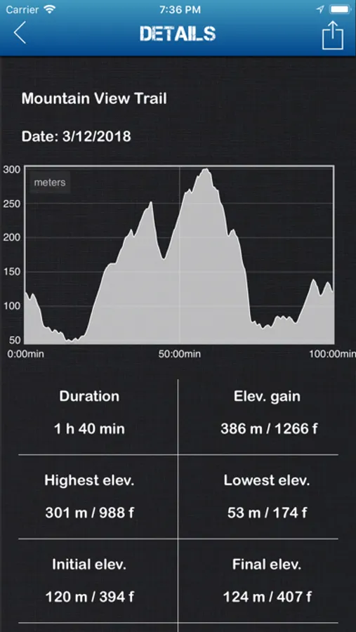 You can track and save your activities(the chart, elevation gain, maximum elevation, minimum elevation, initial elevation, final elevation, duration, difference elevation and average elevation).
