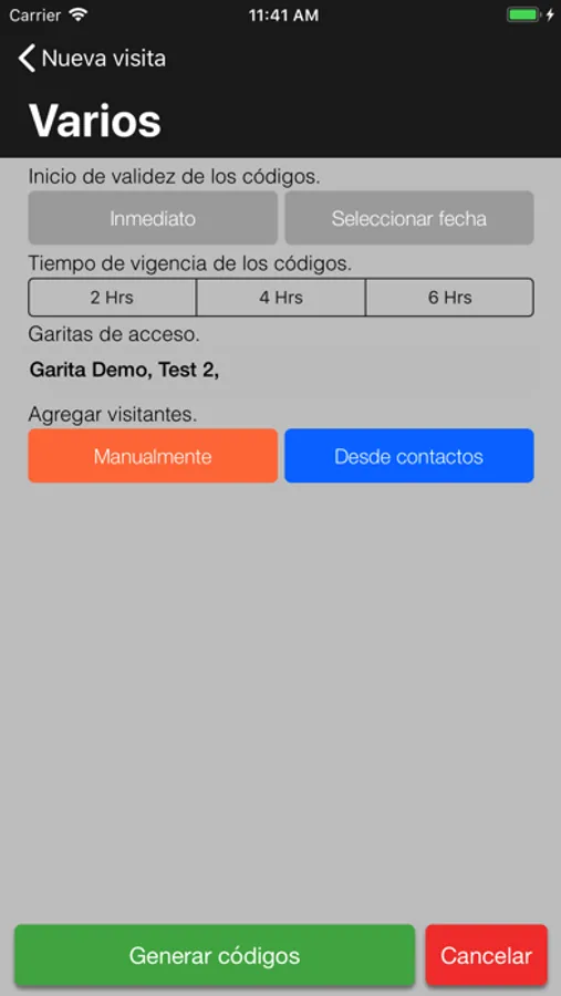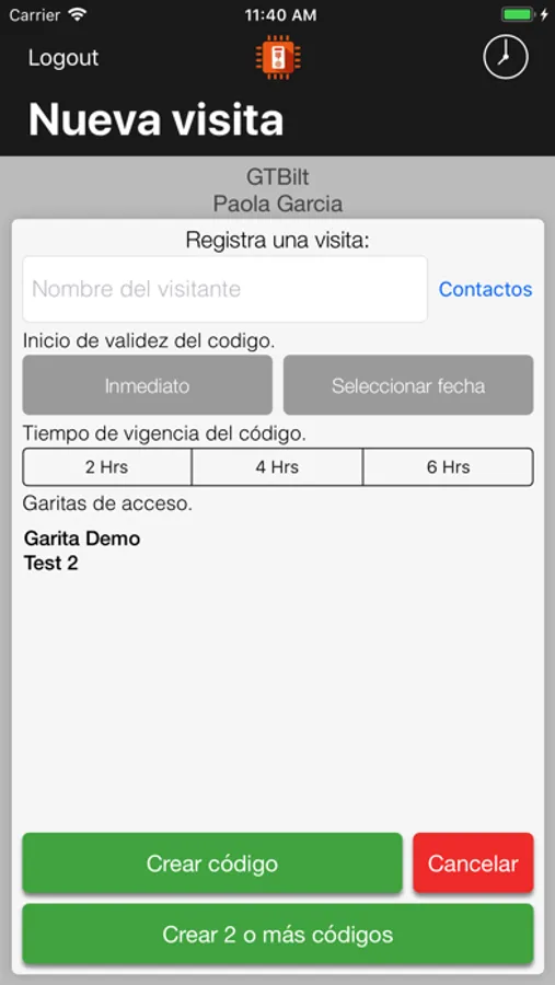 Con el app podrás crear códigos para tus visitantes y compartirlos fácilmente.
